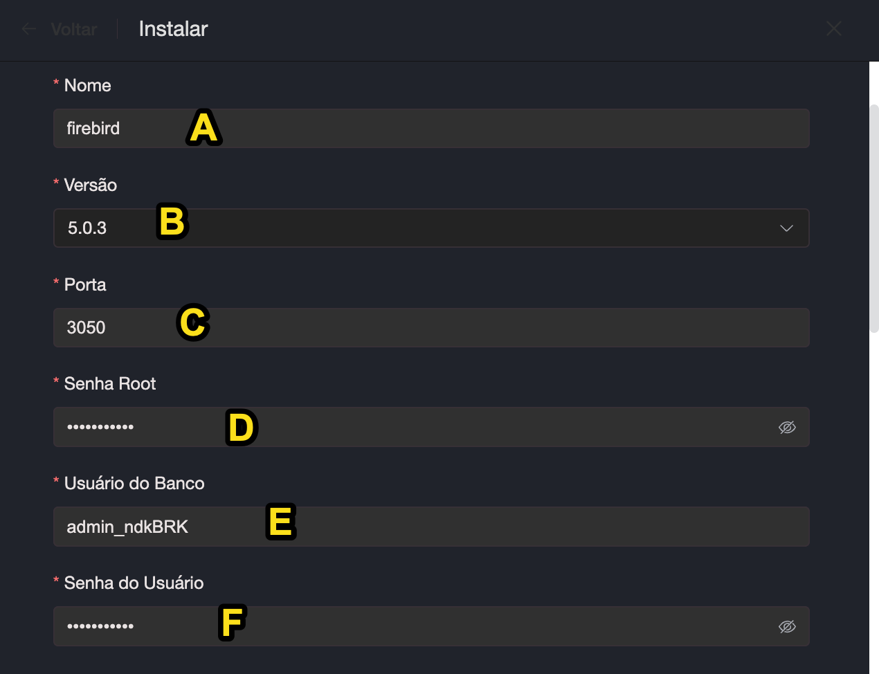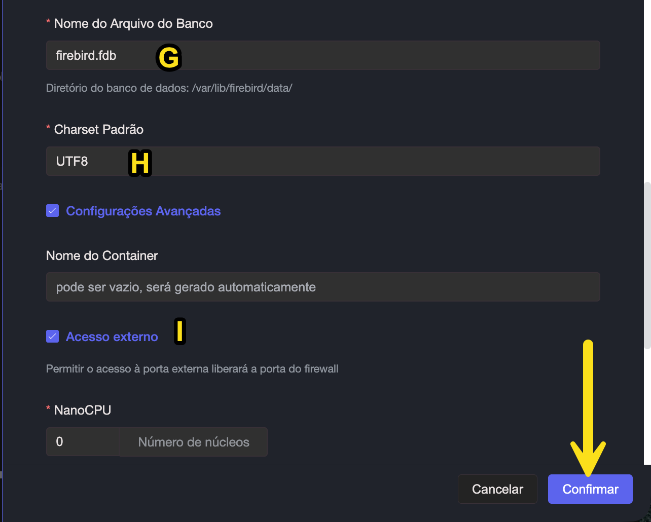 O caminho já é fixo no container: /var/lib/firebird/data/