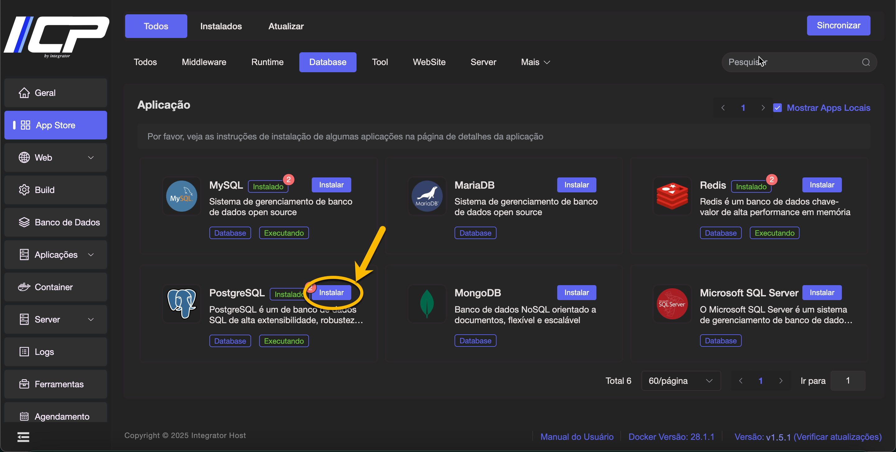 4. Localize o PostgreSQL e clique em Instalar.