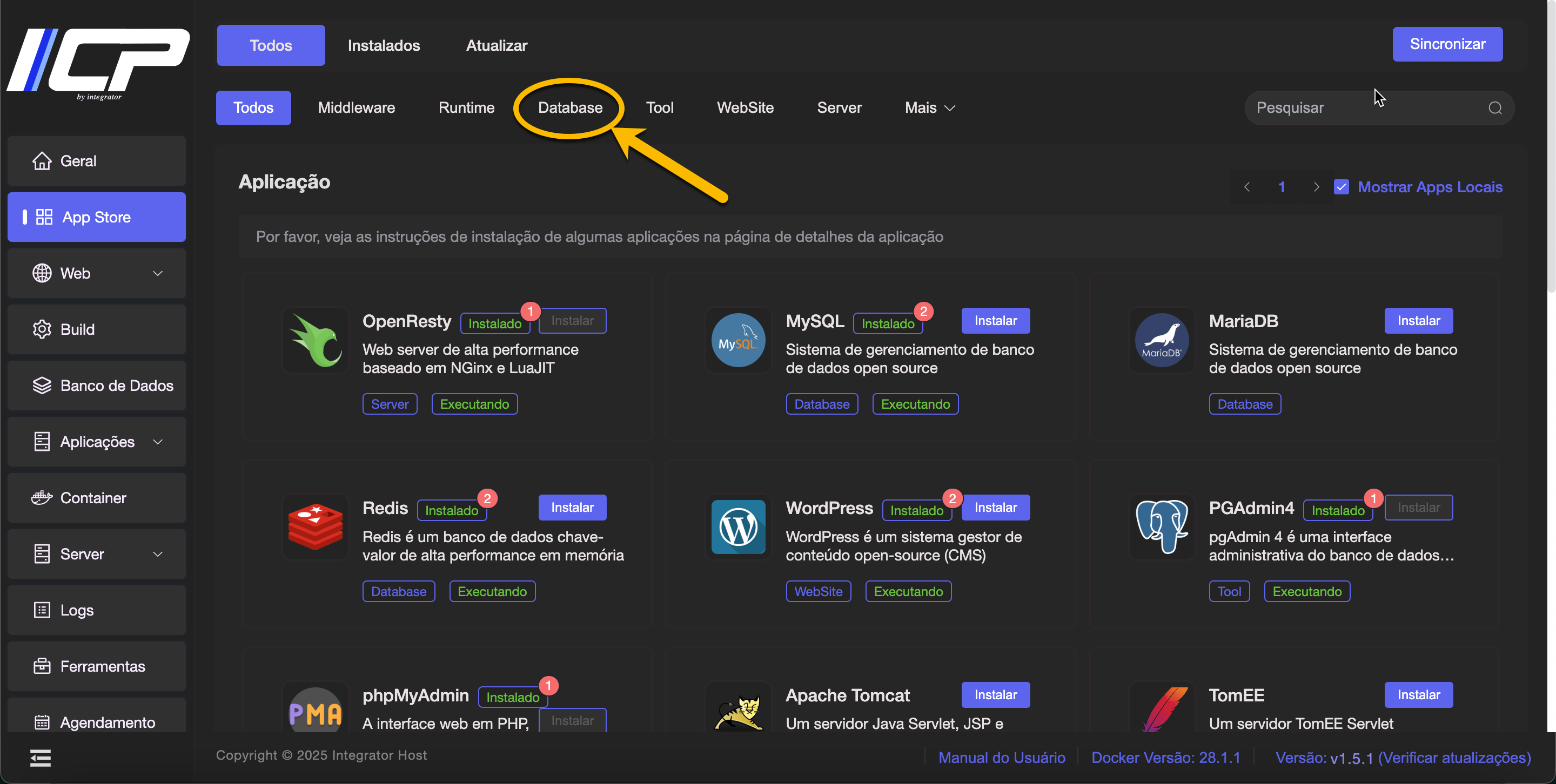 3. Em seguida clique na aba Database