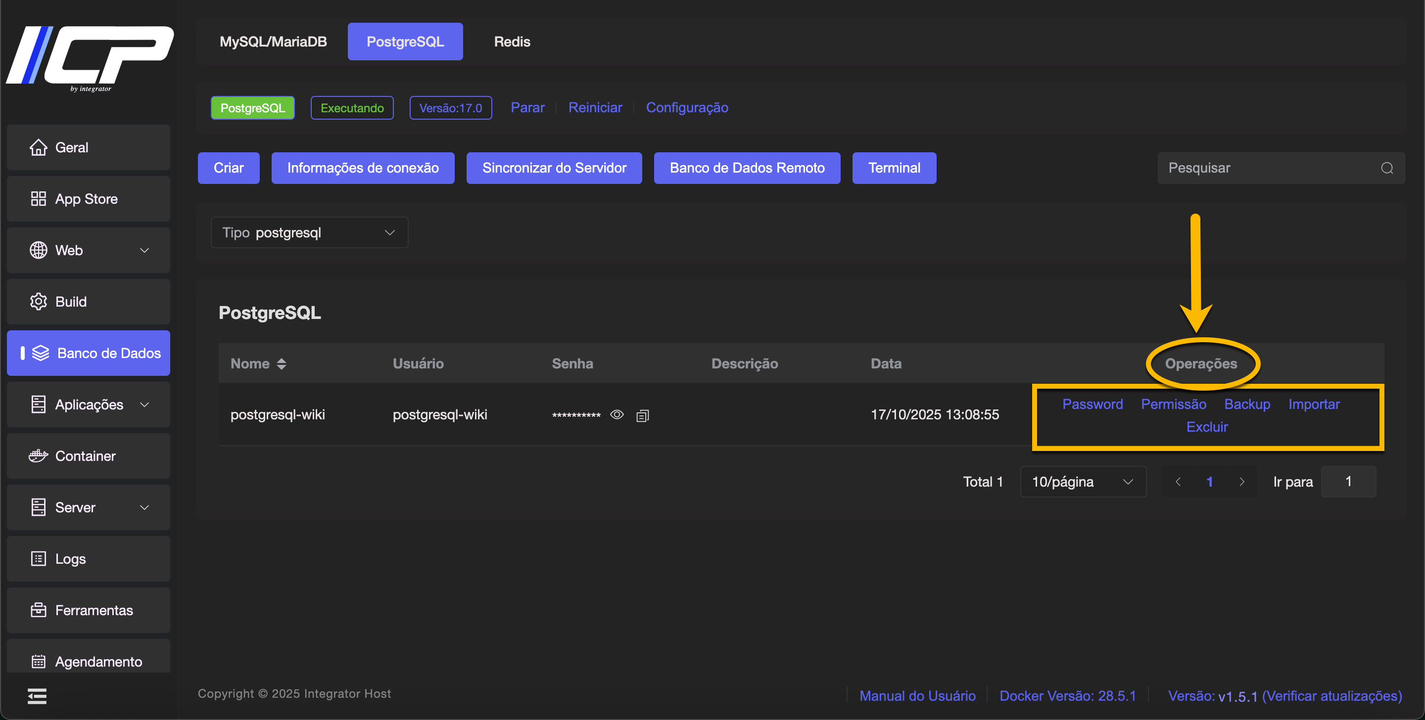 5. Na mesma linha, vá até a coluna Operações