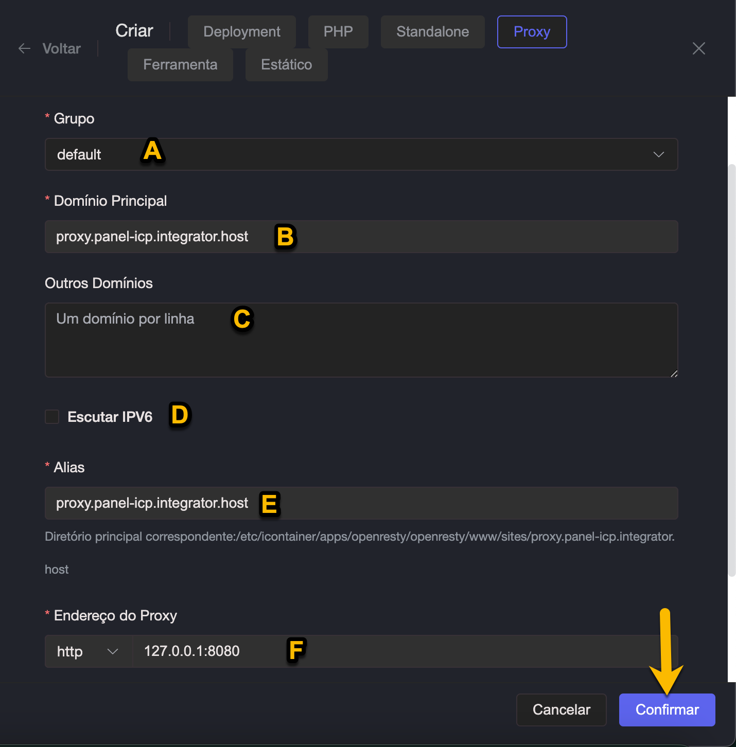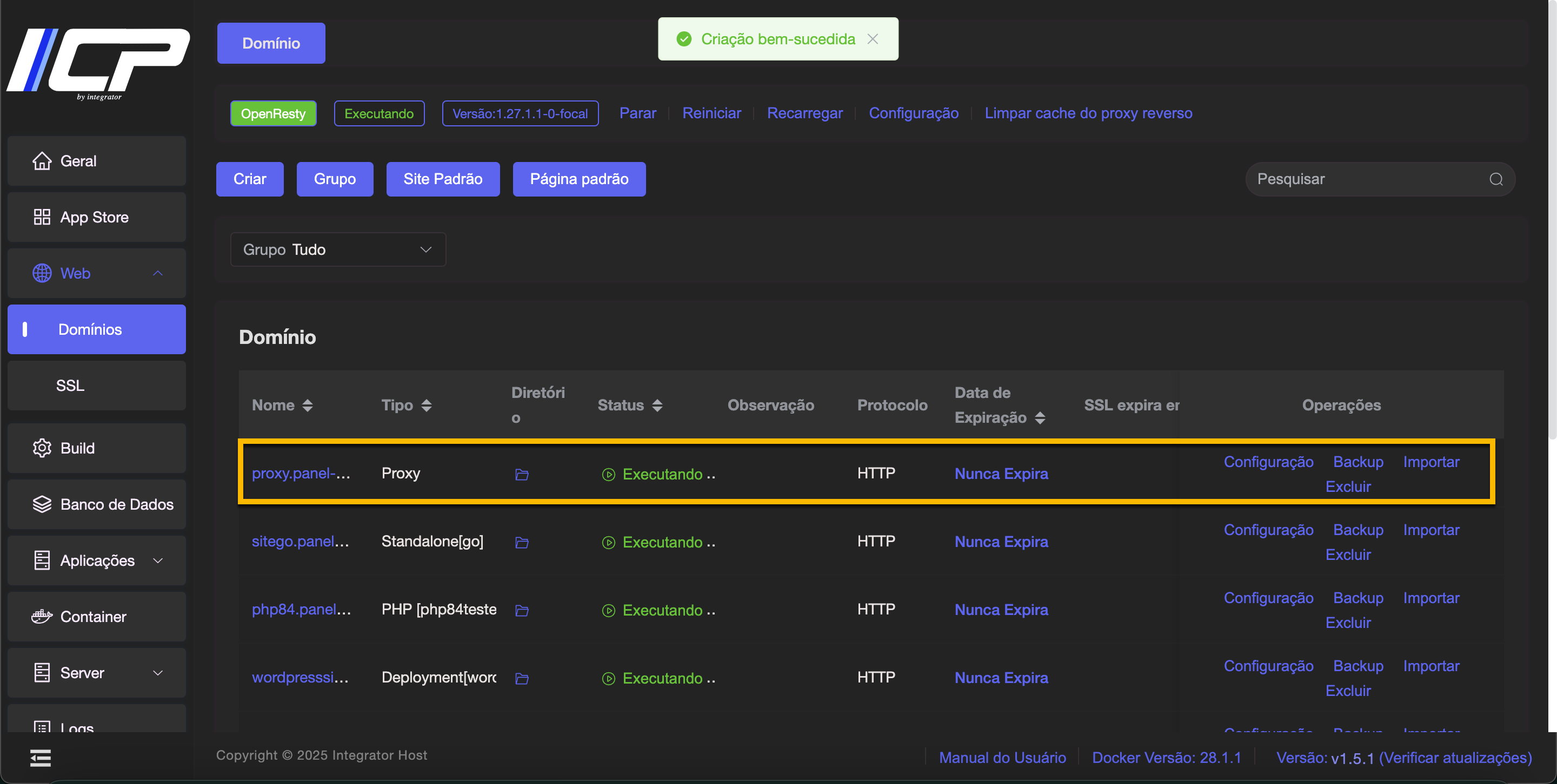 Ou seja, o proxy atua como uma “ponte”: o domínio que você cria no painel aponta para um serviço já existente na sua máquina, em vez de instalar uma nova aplicação.