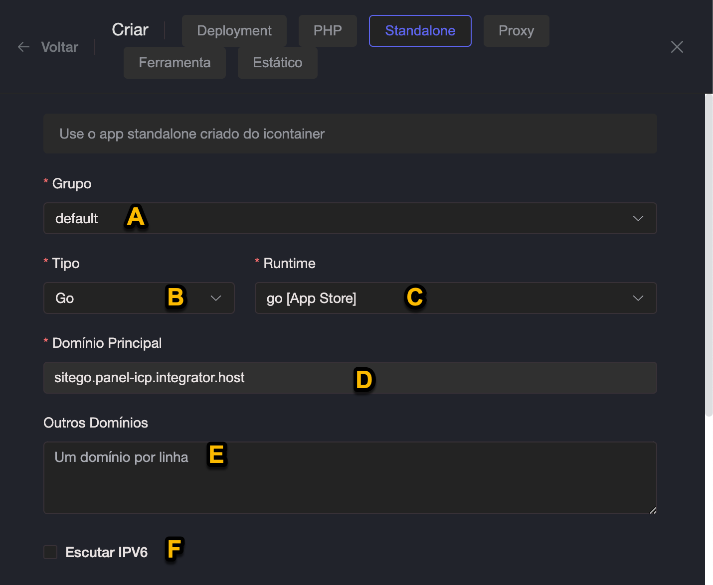 F. Marque a opção IPv6 se quiser que o domínio também responda por esse protocolo