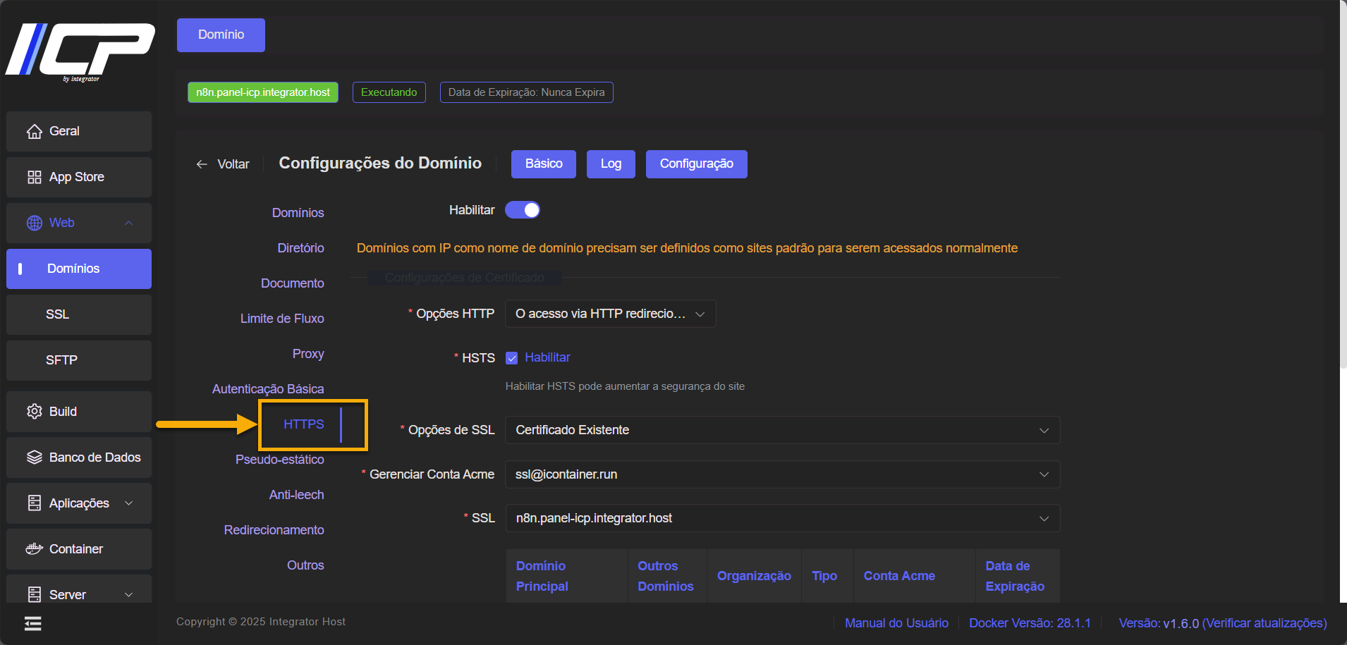 8. Acesse a seção HTTPS, caso ainda não esteja nela