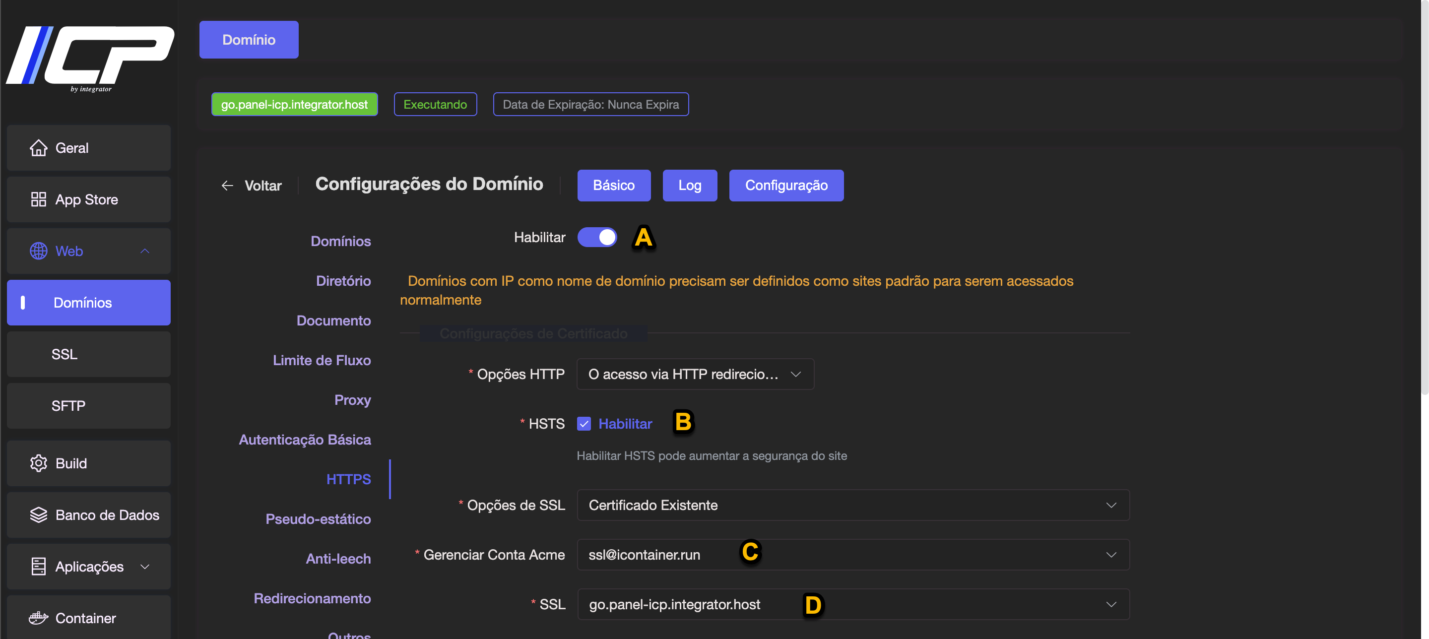 Login no Panel ICP: