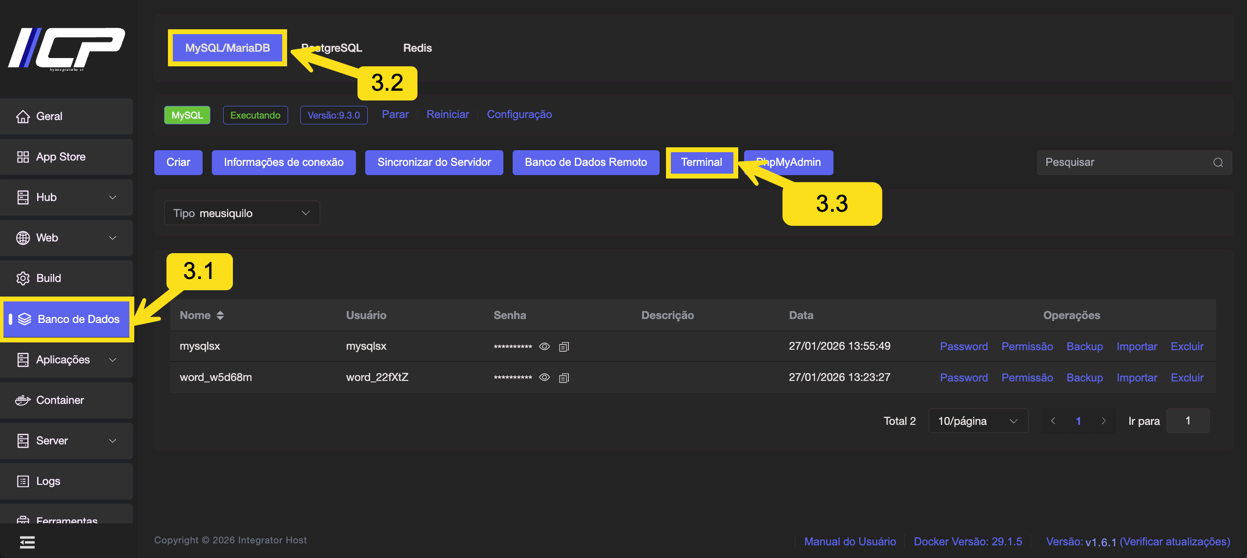3.1. No menu lateral, vá em Banco de dados.