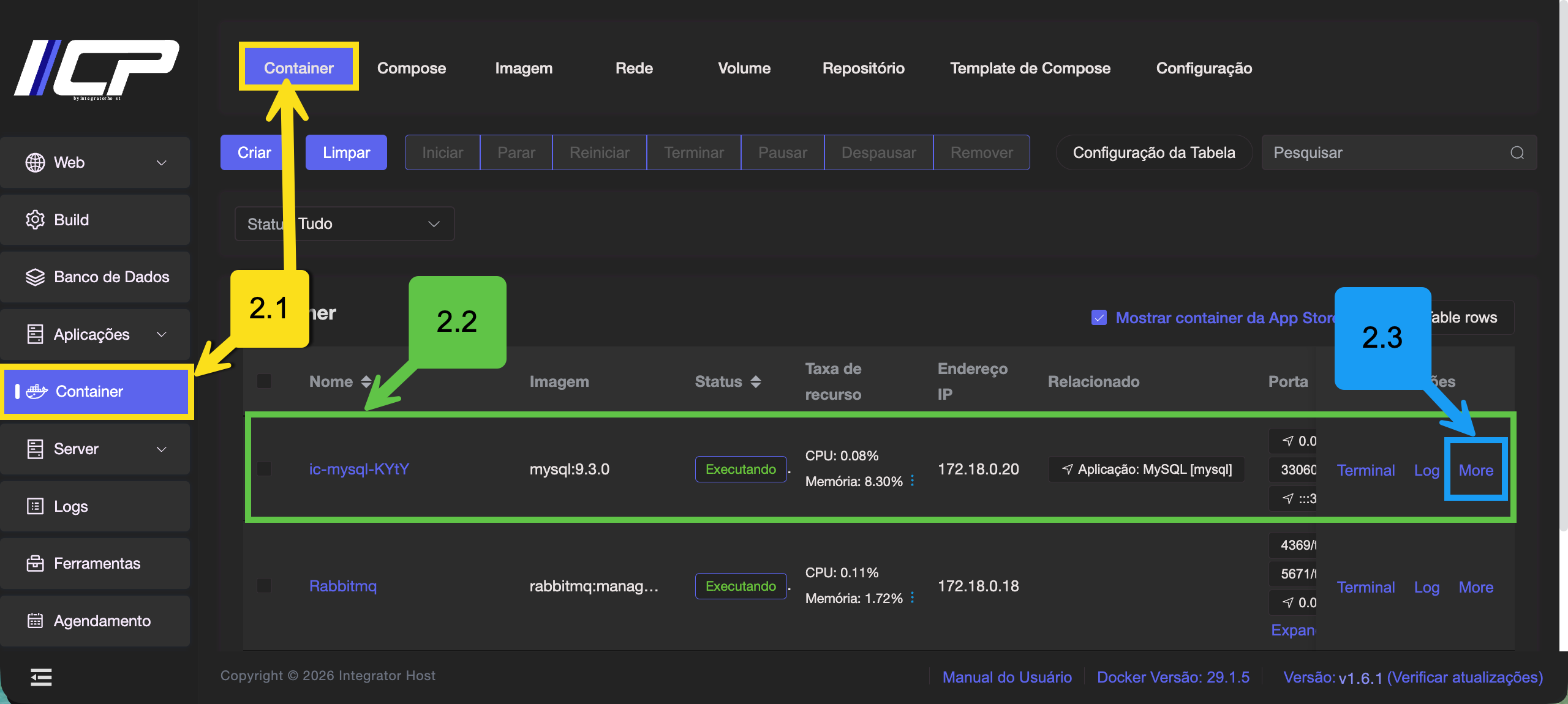 2.1. No menu lateral, vá em Container → Container
